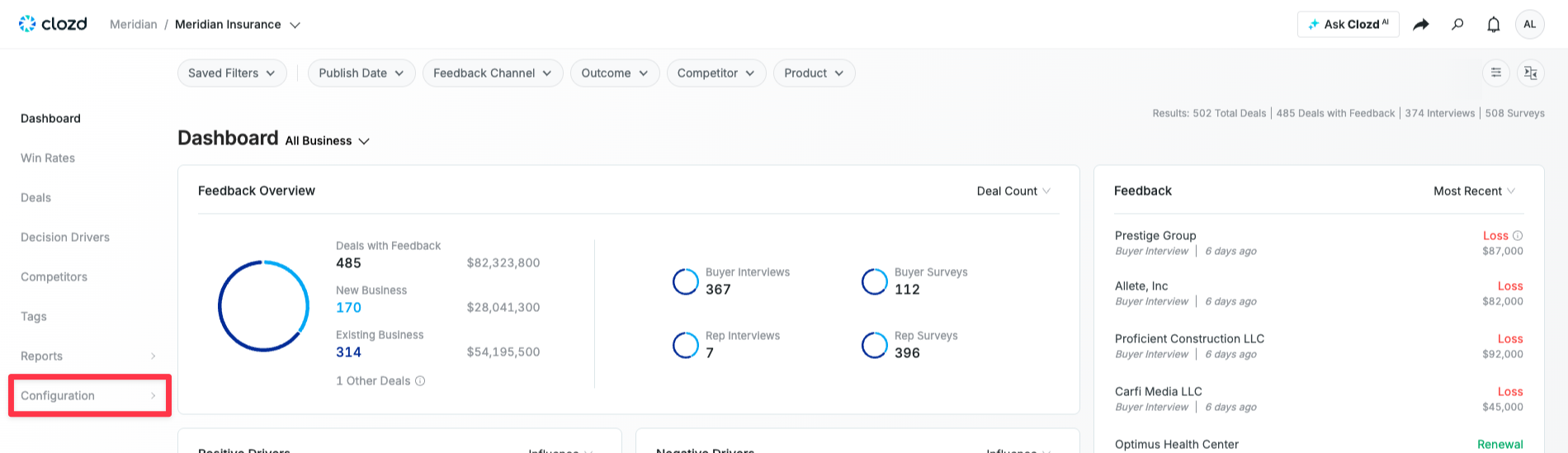 1. Navigate to the Configuration tab in the Clozd Platform.